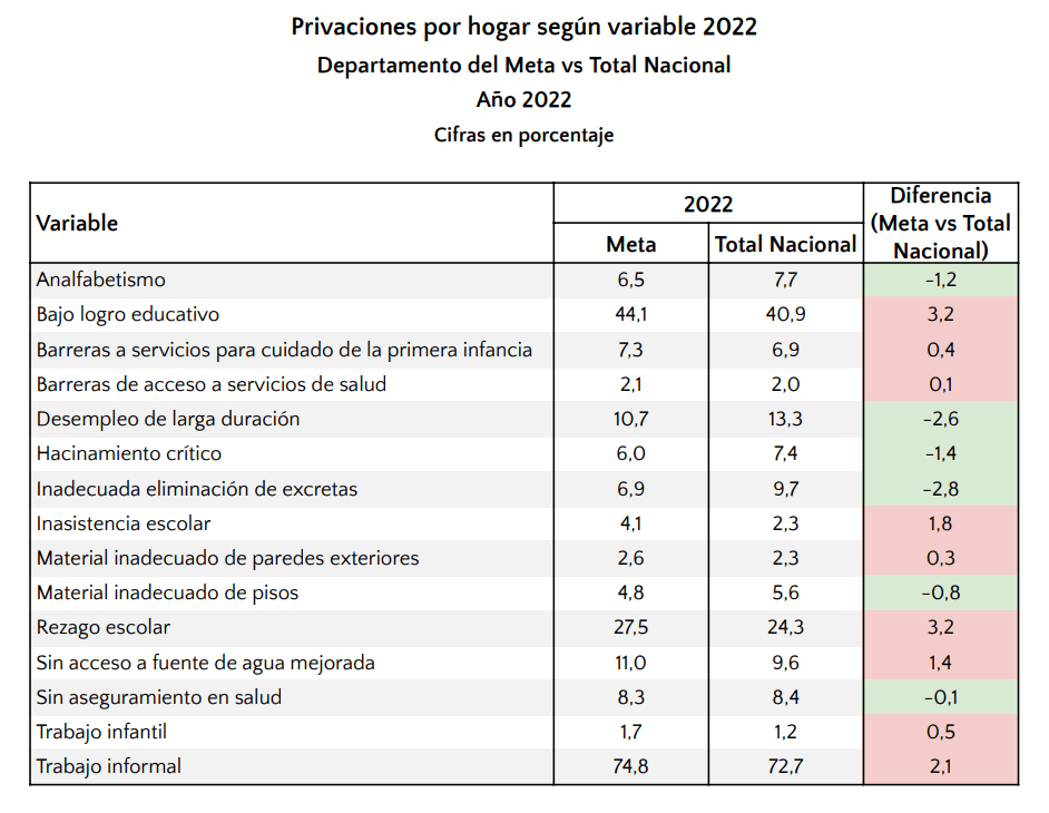 Estos datos deben servir como referente para que los metenses le exijan a la clase política dirigente una mayor inversión en educación para la infancia y adolescencia y la generación de empleo formal a partir del desarrollo del aparato productivo. No existe justificación alguna para que el departamento del Meta siendo el mayor productor de hidrocarburos del país continúe arrastrando estas vergonzosos cifras de pobreza y desigualdad social. Lo que nos indica que el problema no es la falta de recursos, el problema es que los recursos y capacidades con los que contamos han estado mal administrados.